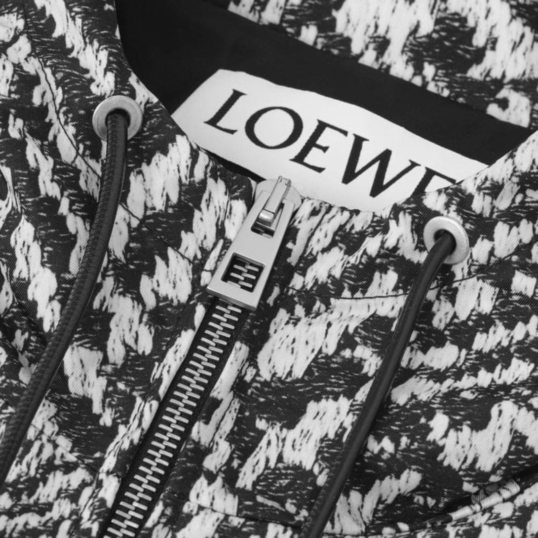 Loewe Hooded Jacket in Nylon is a quintessential example of contemporary luxury meeting functional design. Loewe, renowned for its impeccable craftsmanship and innovative approach, has crafted this piece with a meticulous attention to detail that sets it apart in the realm of high fashion. The jacket’s use of premium nylon not only ensures durability but also provides a sleek, modern aesthetic that aligns with Loewe’s commitment to quality.
