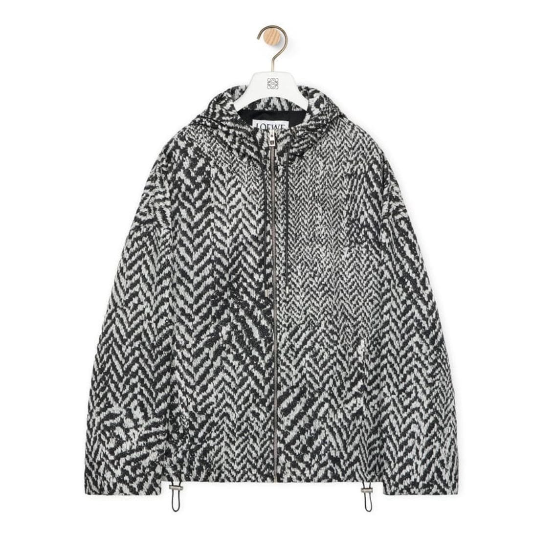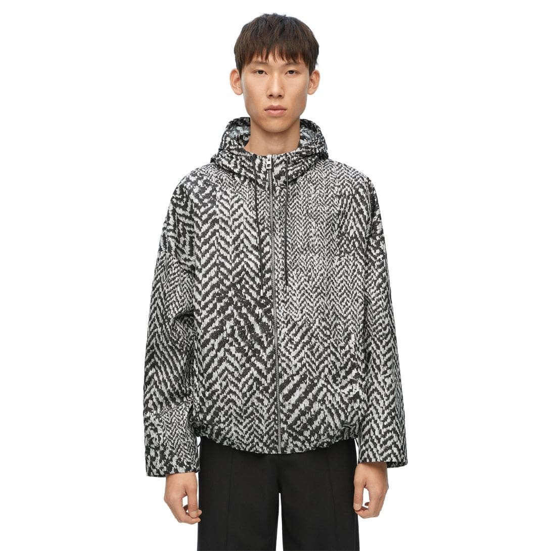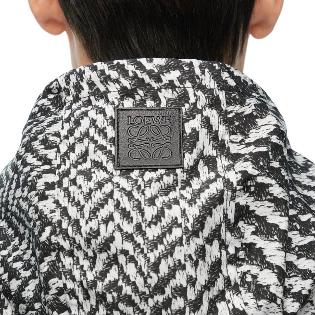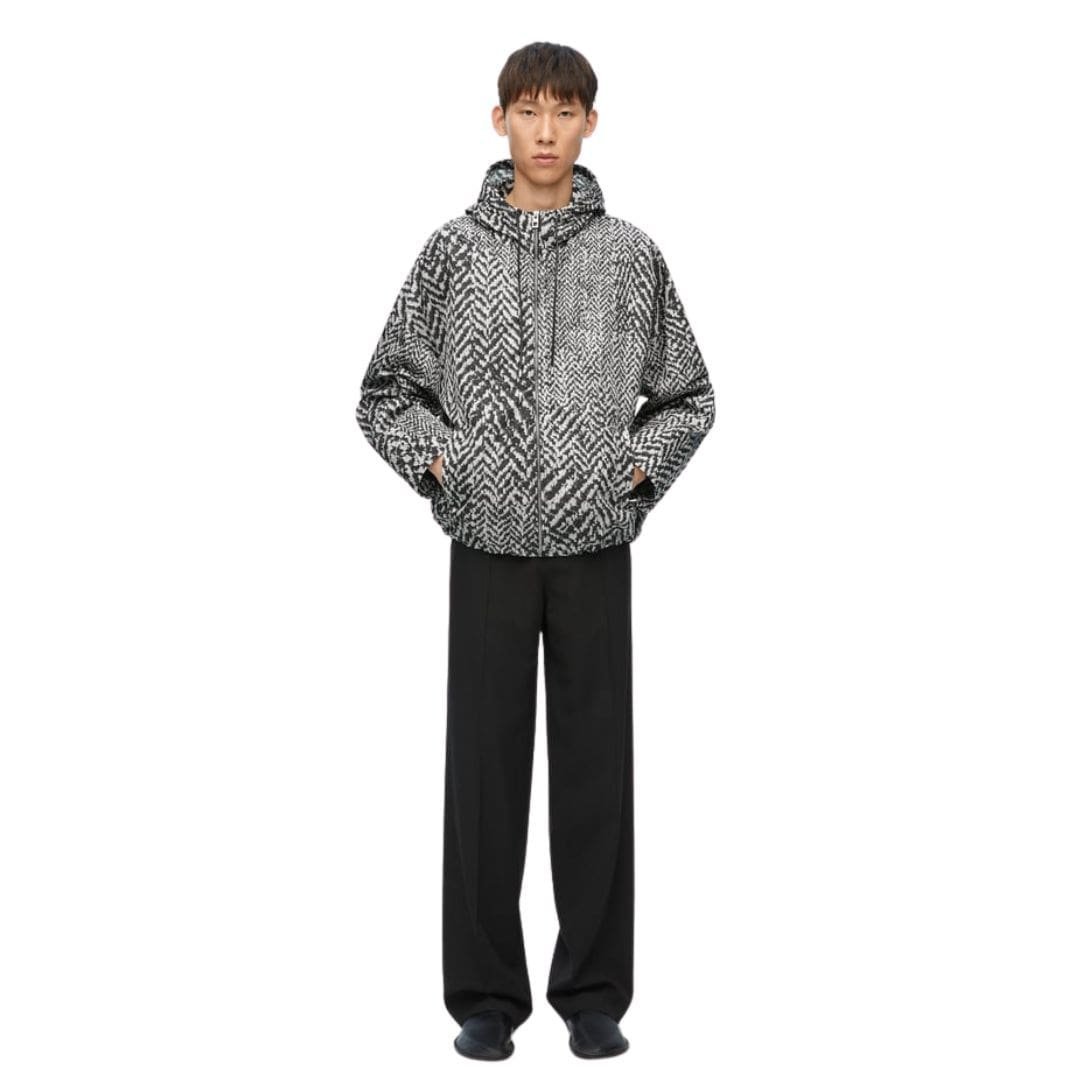 The design of the Loewe Hooded Jacket is both sophisticated and practical. Its minimalist silhouette is complemented by a well-engineered hood, which adds a functional yet stylish element. This feature is particularly beneficial for adapting to varying weather conditions, offering protection without compromising on elegance. The jacket’s clean lines and understated branding reflect Loewe’s ability to blend simplicity with high-end fashion.