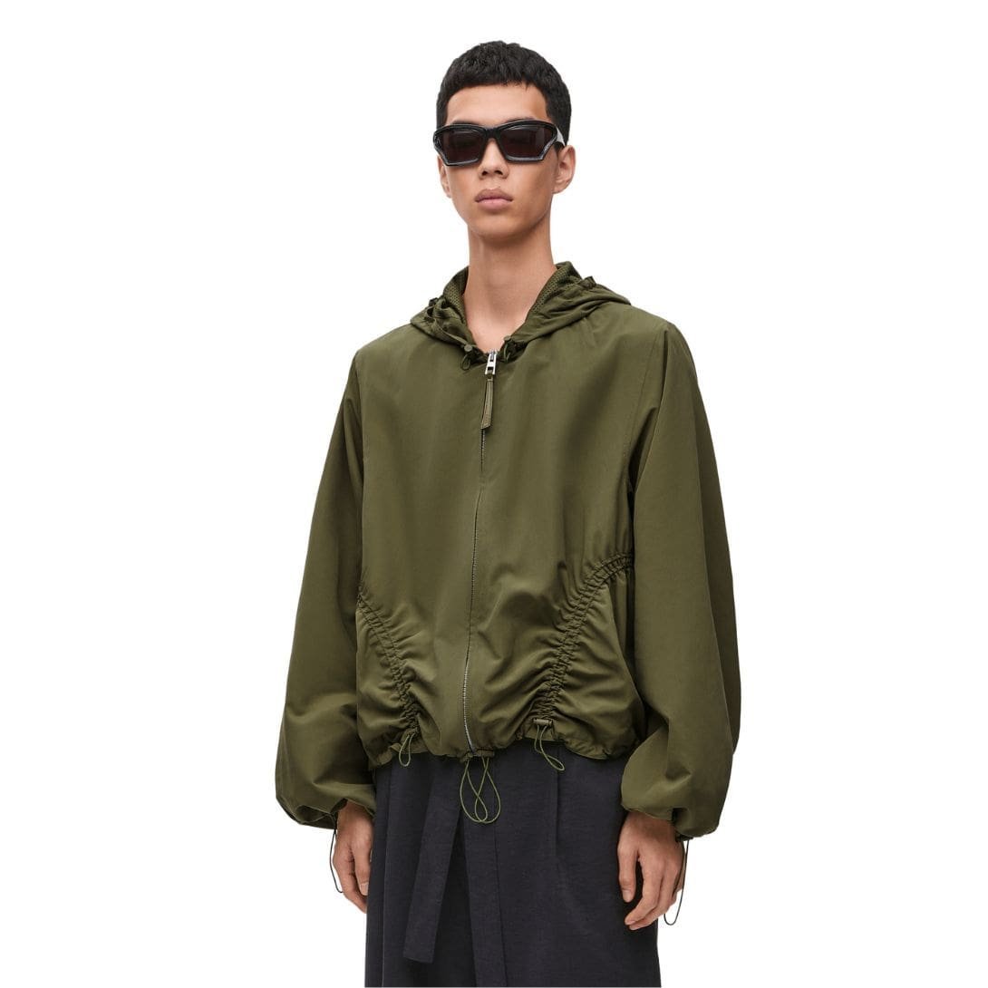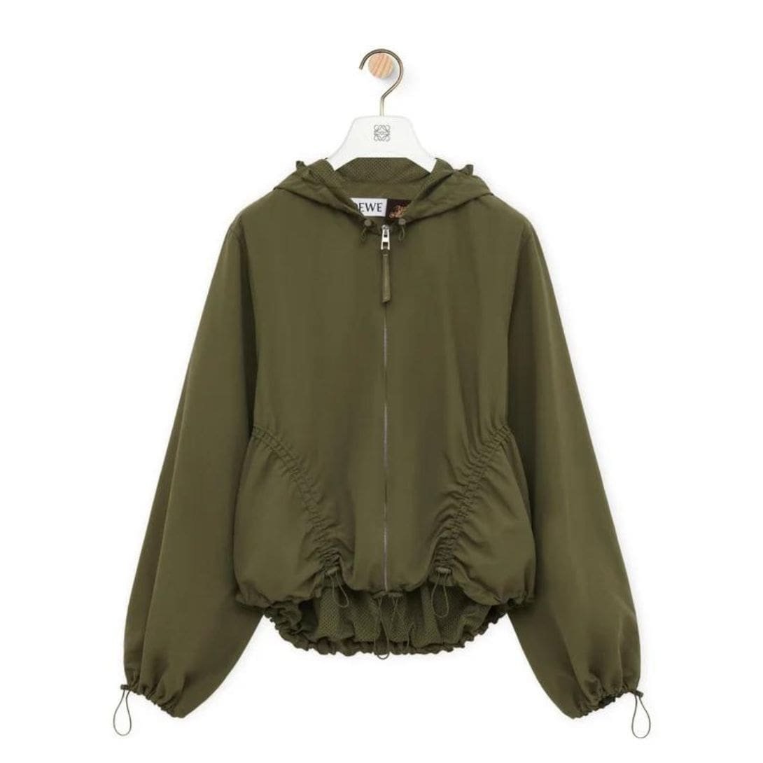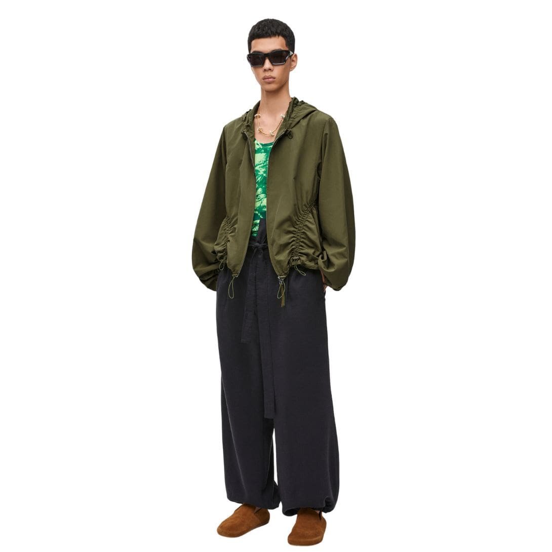Loewe’s Hooded Jacket in Technical Shell is more than just an outerwear piece; it’s a reflection of modern fashion’s shift towards functional yet fashionable designs. Its versatility makes it a staple in any wardrobe, providing both protection and style. Whether navigating the city or exploring the great outdoors, this jacket stands as a prime example of how contemporary fashion can meet practical needs without compromising on sophistication.