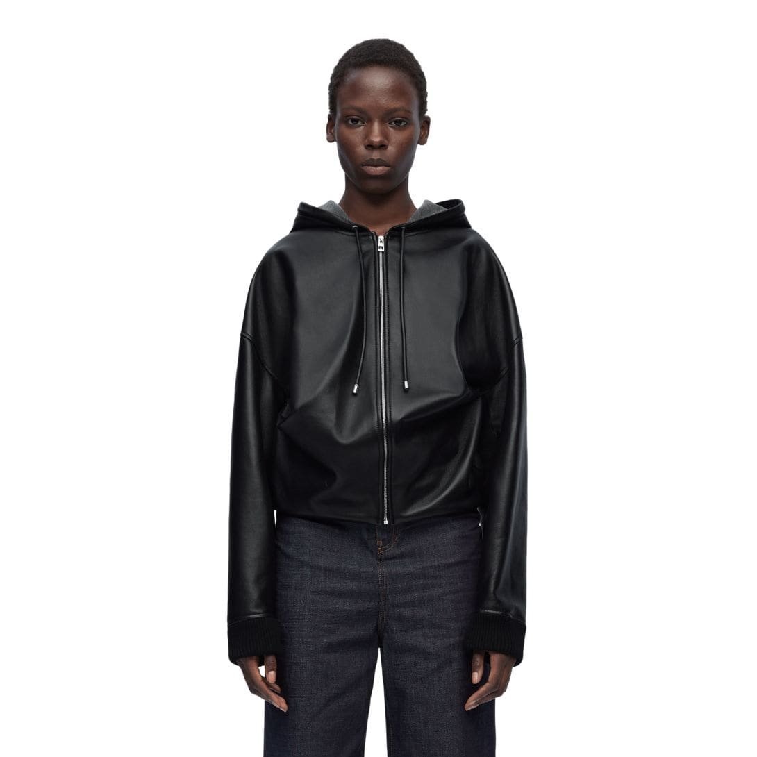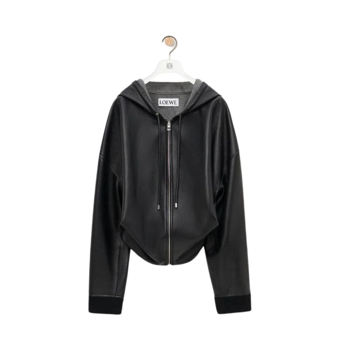 The Loewe hooded sweatshirt draped in lambskin nappa leather embodies luxury and contemporary style, crafted from high-quality nappa as its main material. Weighing 0.7 kg, this sweatshirt strikes a perfect balance between substantial feel and comfortable wear.