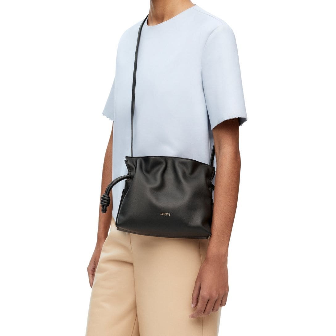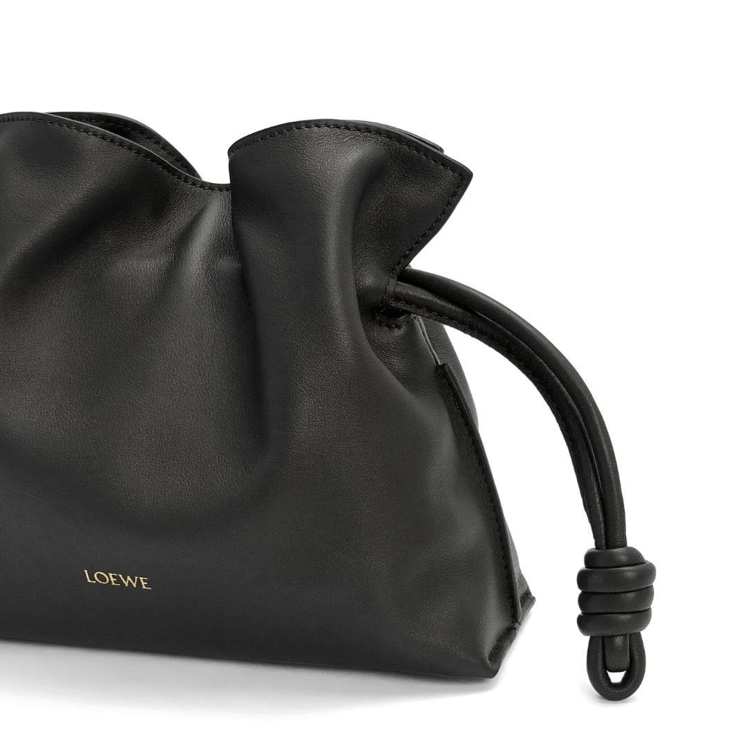 In addition to its practical design, the Mini Flamenco Clutch Bag features LOEWE’s signature knot detailing, adding a touch of uniqueness and flair to the overall aesthetic. This subtle yet distinctive element sets the bag apart, highlighting the brand’s commitment to craftsmanship and innovative design.