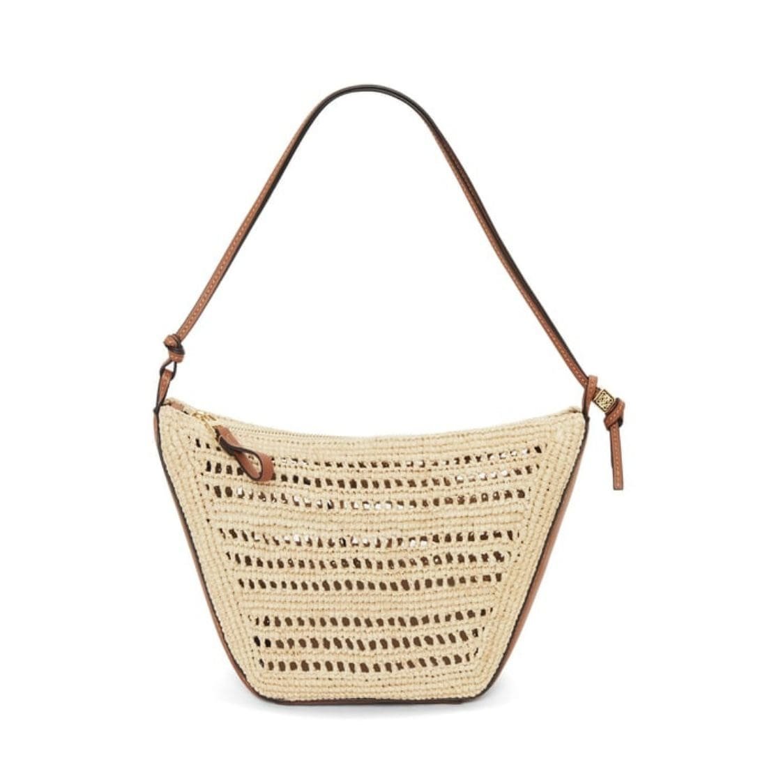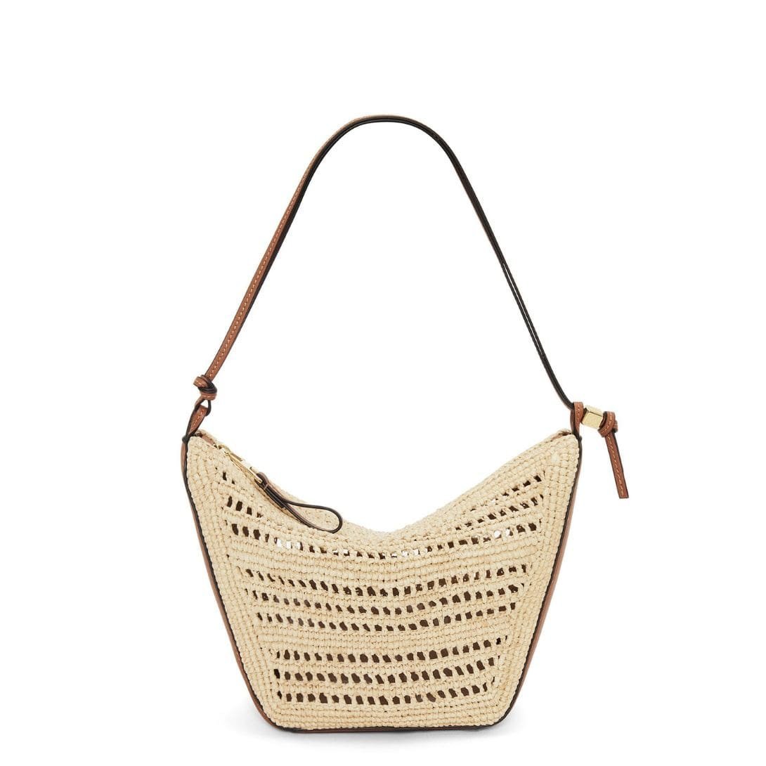 LOEWE MINI HOBO HAMMOCK BAG IN RAFFIA AND CALFSKIN