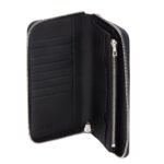 The wallet features intricate puzzle stitching, highlighting Loewe’s attention to detail and unique design elements. The smooth calfskin leather is meticulously crafted, showcasing the brand’s commitment to quality and refinement. Inside, multiple compartments and slots ensure efficient organization and easy access to belongings, while a secure closure mechanism adds peace of mind.
