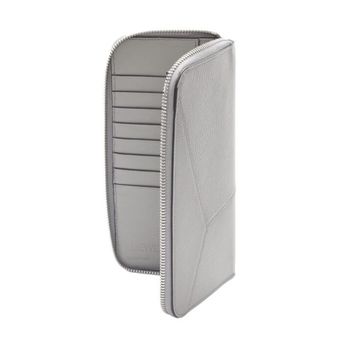 Loewe’s Puzzle open wallet with zip in classic calfskin leather is not only practical but also a statement of luxury and utility. It embodies the brand’s dedication to timeless craftsmanship and contemporary design, offering functionality without compromising on aesthetic appeal. Perfect for individuals who appreciate fine craftsmanship and refined style, this wallet elevates daily essentials with elegance and sophistication.