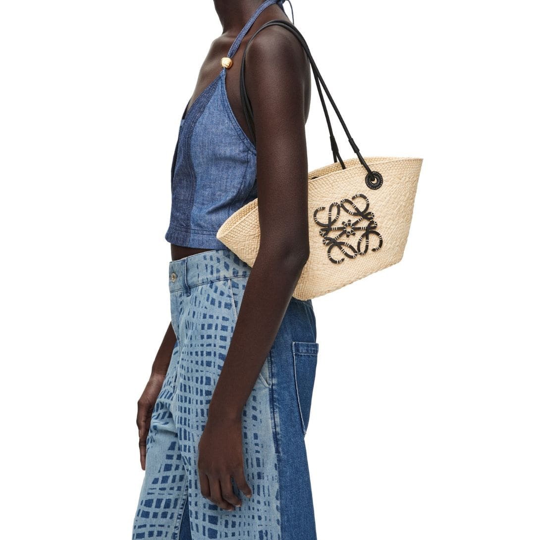 Featuring a convenient 25-centimeter handle drop, Loewe Small Anagram Basket Bag In Iraca Palm And Calfskin strikes a balance between practicality and style. With a lightweight design, weighing just 0.15 kilograms, it offers ease of use without compromising on durability.