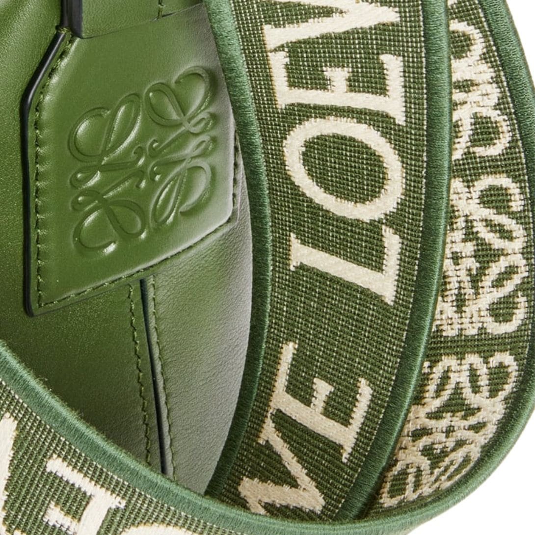The LOEWE Small Cubi Crossbody Bag in supple smooth calfskin and jacquard fabric, exuding both elegance and practicality. This bag features a sleek, minimalist design with a clean silhouette, making it a versatile choice for various occasions.