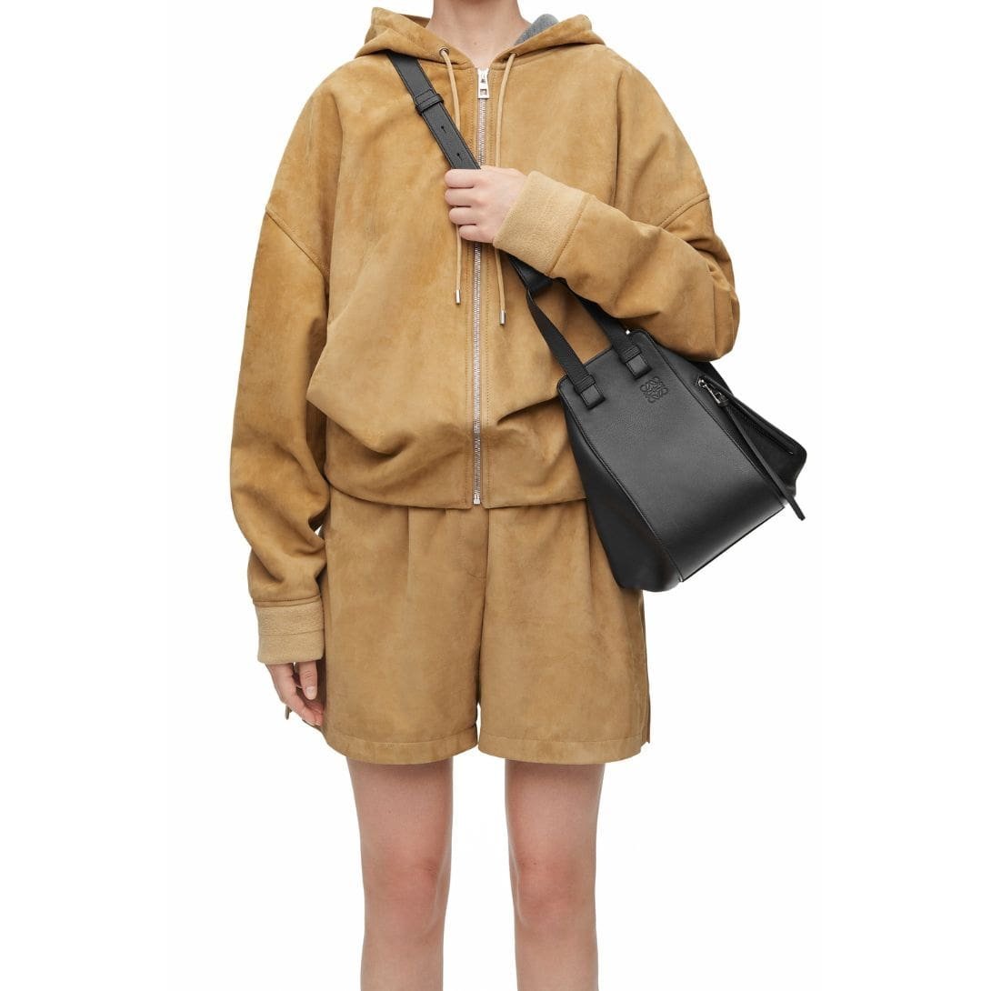 Introducing the iconic LOEWE Small Hammock Bag In Classic Calfskin, meticulously crafted from premium classic calf leather, radiating timeless sophistication. Its adjustable shoulder strap, spanning 90 to 105 cm, ensures personalized comfort, while the sturdy handle offers a convenient 10 cm drop for effortless handheld carry.