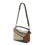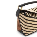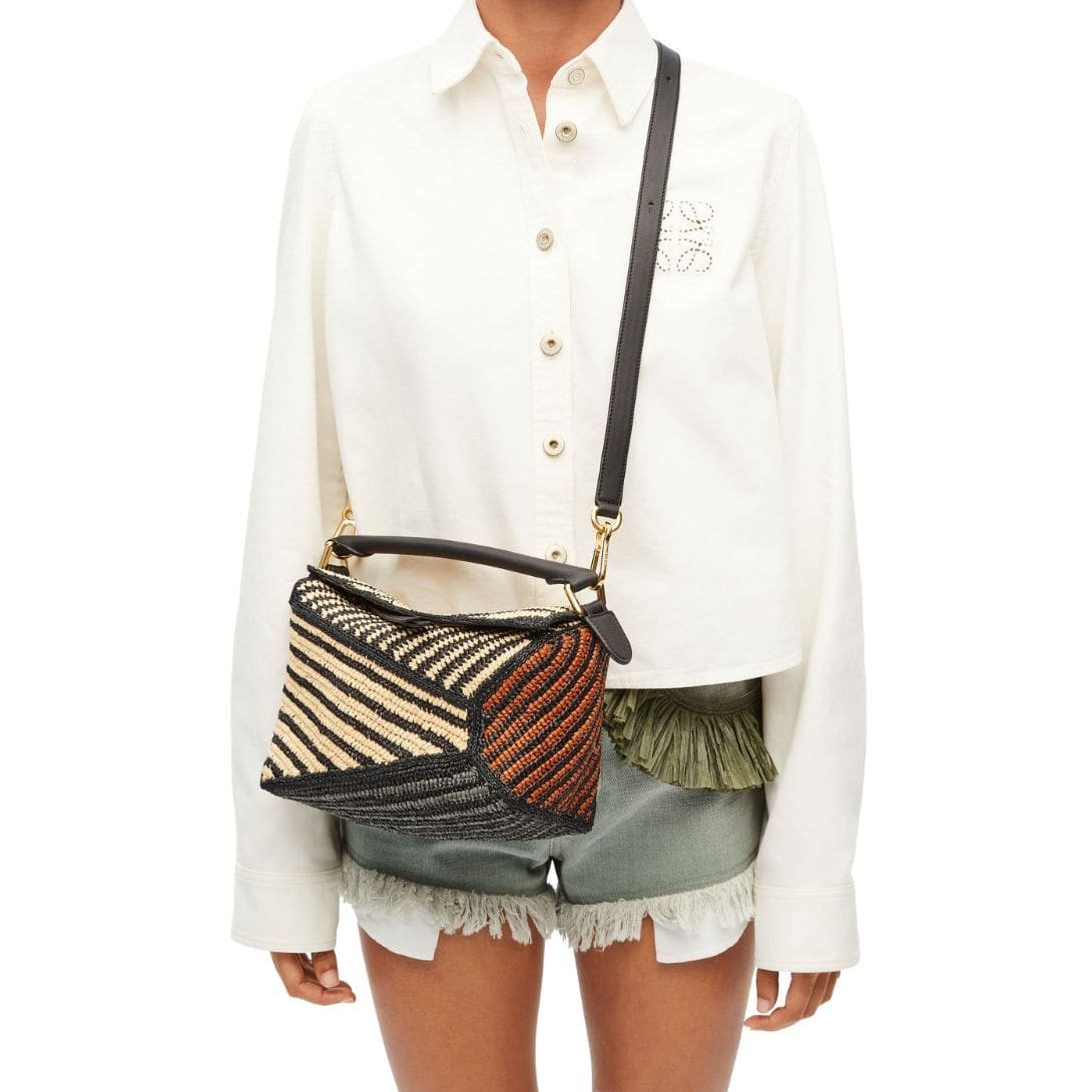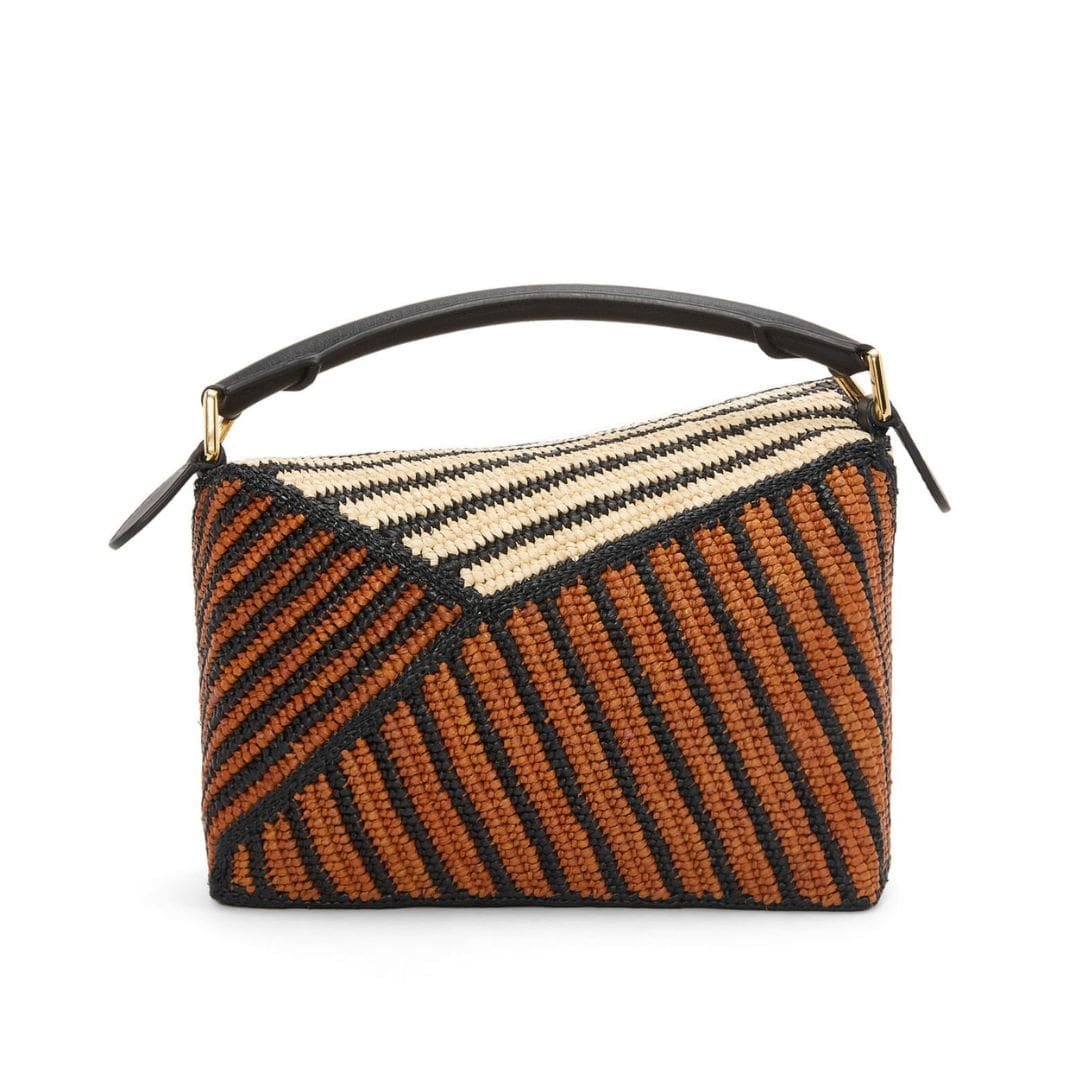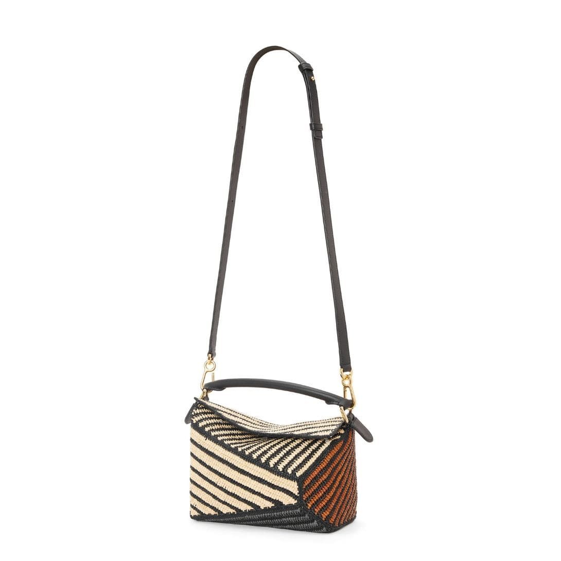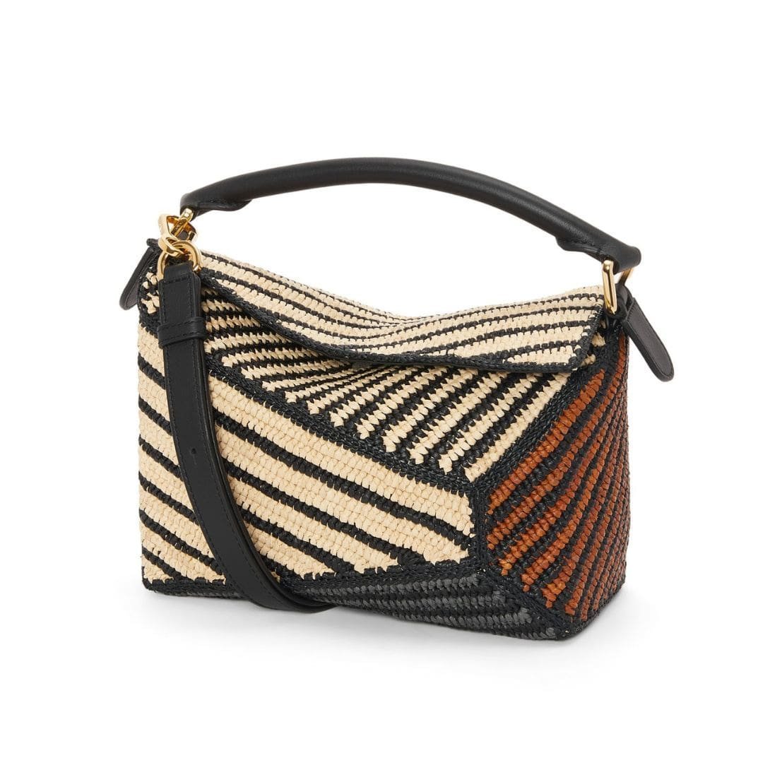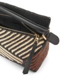 LOEWE SMALL PUZZLE EDGE BAG IN RAFFIA AND CALFSKIN