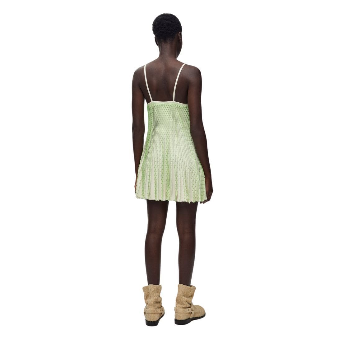 Loewe’s commitment to quality craftsmanship is evident in the meticulous construction of this dress. Every seam and detail is carefully executed to ensure a flawless finish that meets the brand’s high standards. The lightweight nature of viscose enhances the dress’s wearability, making it an essential piece for warm weather and layering during cooler seasons.