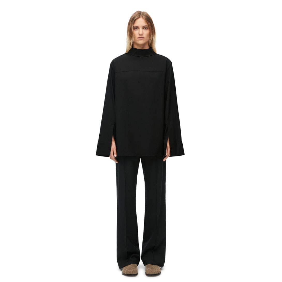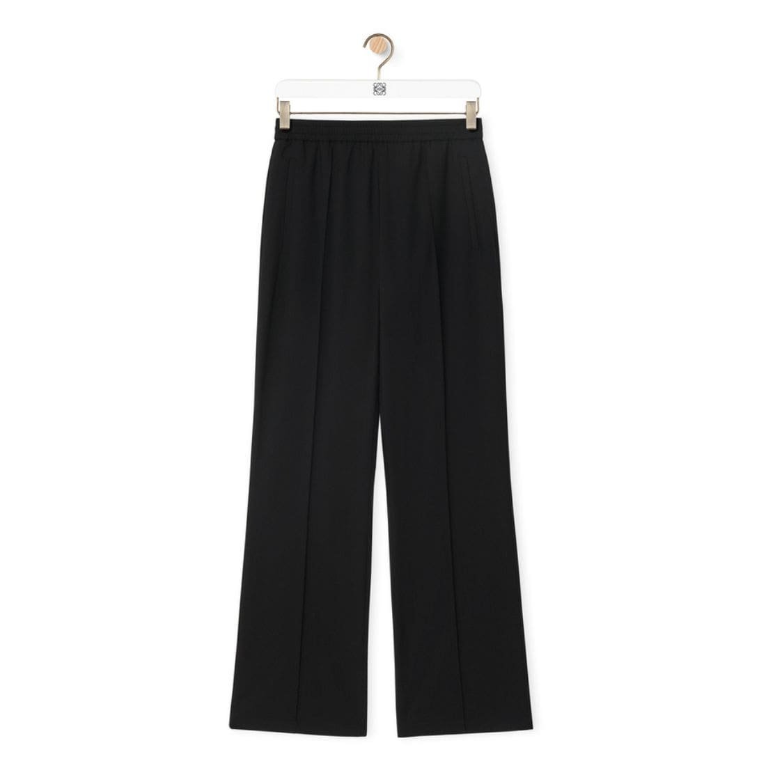 Loewe’s design team has thoughtfully crafted these trousers to balance function and style. The wool fabric used in these trousers is both breathable and insulating, making them an ideal choice for various climates. The tailored cut provides a sleek silhouette, bridging the gap between casual and formal wear. This versatility allows the trousers to be paired effortlessly with a range of tops, from a simple T-shirt to a smart blazer.
