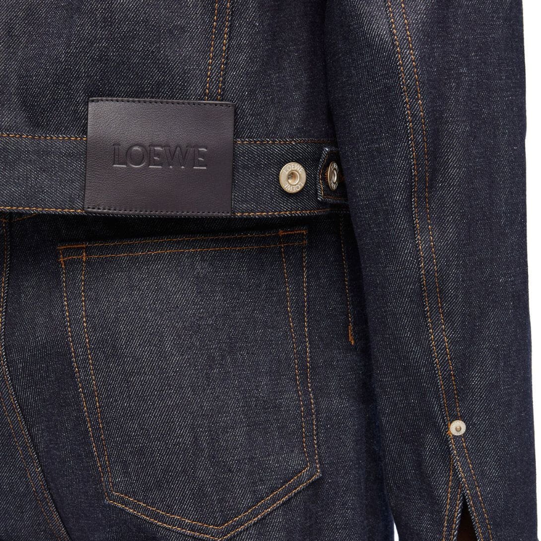 Loewe’s attention to detail is evident in every stitch of this jacket. The denim is expertly treated to achieve a unique wash that enhances its visual appeal, while the contrasting stitching adds a subtle yet distinct touch. The jacket features traditional trucker elements such as flap pockets, metal buttons, and a structured collar, but with Loewe’s signature flair. These design elements come together to create a jacket that is both timeless and contemporary, making it a versatile addition to any wardrobe.