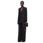 Versatility is another hallmark of the Loewe tuxedo trousers. While they pair perfectly with a matching tuxedo jacket for black-tie events, they can also be styled with a crisp white shirt or a casual knit for a more relaxed yet polished look. This adaptability makes them a valuable addition to any wardrobe, suitable for various occasions and settings.