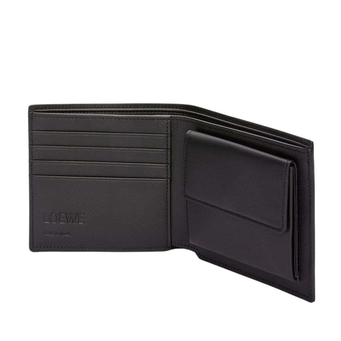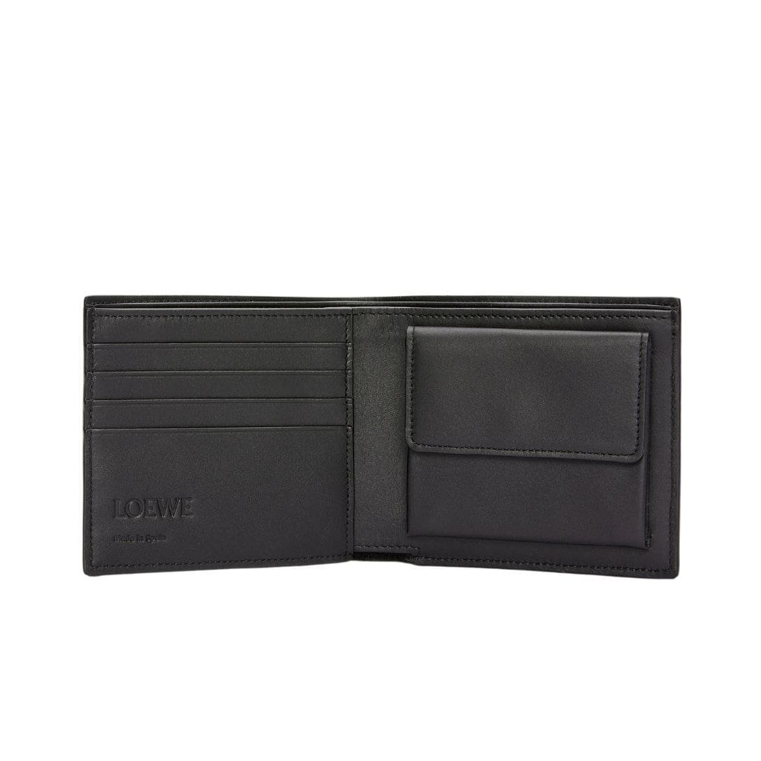 The Loewe wallet with bifold coin purse in shiny calfskin is a perfect blend of luxury and practicality, designed to keep your essentials organized in style. Crafted from high-quality polished calfskin leather, this wallet offers a sophisticated and durable construction, making it a timeless accessory for any occasion.