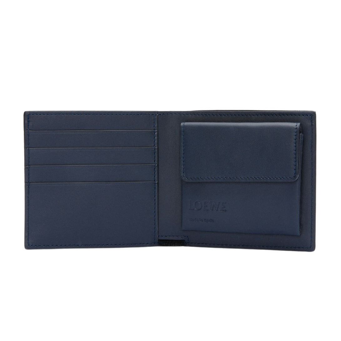 The Loewe wallet with bifold coin purse in soft grained calfskin leather is an exquisite blend of luxury and practicality, perfect for those who appreciate high-quality craftsmanship and elegant design. This wallet, crafted from soft grained calfskin leather, offers a smooth and luxurious texture that stands out in both appearance and touch.