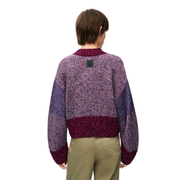 Loewe’s attention to detail is evident in the sweater’s construction, featuring meticulous stitching and a refined finish that emphasize its premium materials. The texture of the wool adds a luxurious feel, enhancing the sweater’s overall aesthetic appeal.