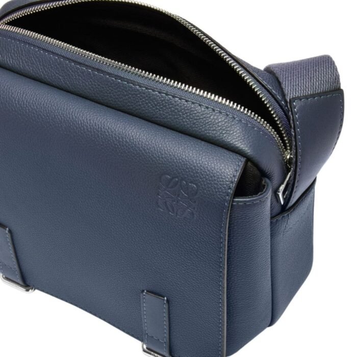 Overall, the LOEWE XS Military Messenger Bag in Soft Grained Calfskin exemplifies the brand’s commitment to quality and design. Its combination of luxurious materials, elegant metallic accents, and practical features makes it a standout accessory for those seeking both sophistication and functionality in their daily carry.