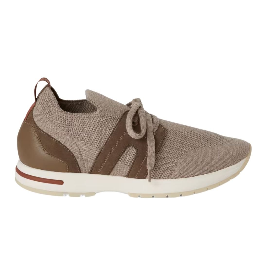 The white rubber sole is designed for lightness and durability, featuring kummel-colored inserts and a tread with the Loro Piana initials. This ultra-light technical sole enhances mobility, making the sneakers perfect for all-day wear.