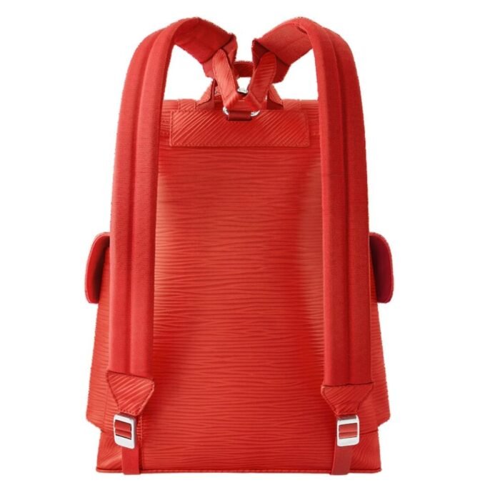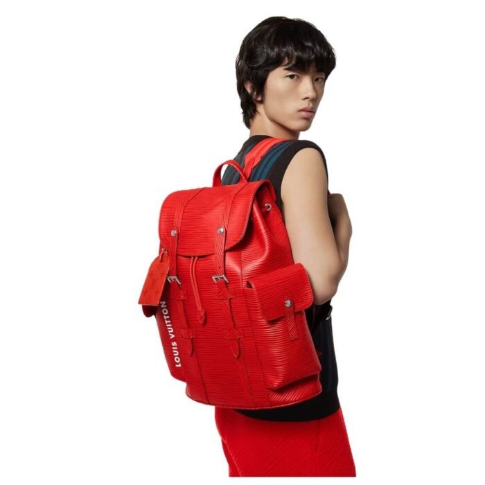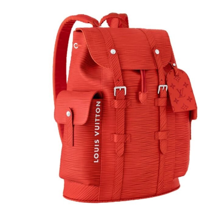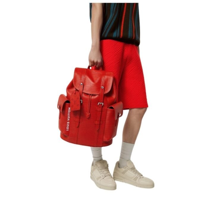Presenting the iconic LOUIS VUITTON CHRISTOPHER MM backpack from Louis Vuitton, now showcased in a vibrant Vermillion Red hue crafted from luxurious Epi XL-grained leather. This bold color choice adds a striking flair to the classic design, elevating any ensemble with its eye-catching presence.