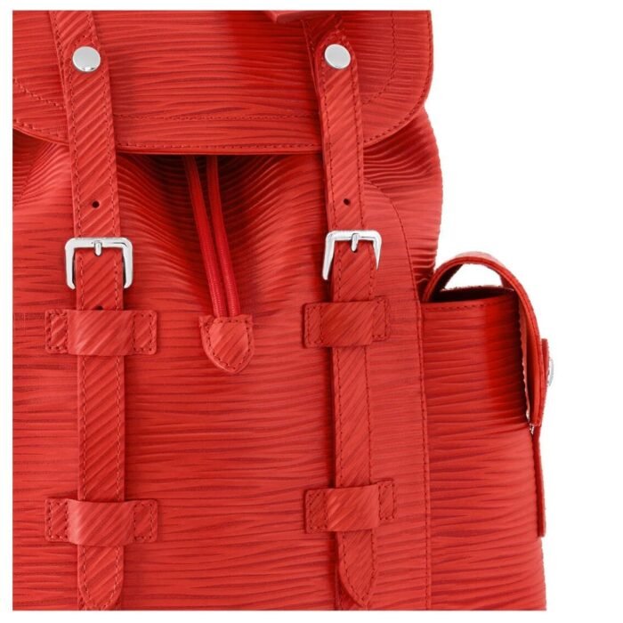 Measuring 15 x 17.3 x 4.9 inches, the LOUIS VUITTON CHRISTOPHER MM backpack offers ample space for your everyday essentials while maintaining a sleek and streamlined silhouette. The Epi XL-grained leather boasts a textured embossing, larger than that of regular Epi leather, enhancing its durability and resilience against wear and tear. This ensures that your backpack remains as pristine as the day you acquired it, even with daily use.