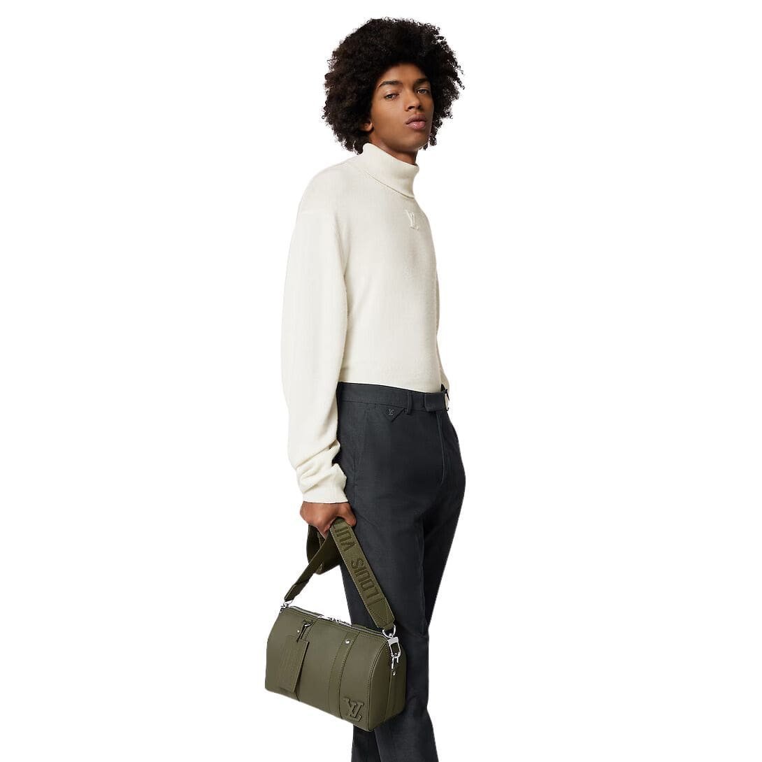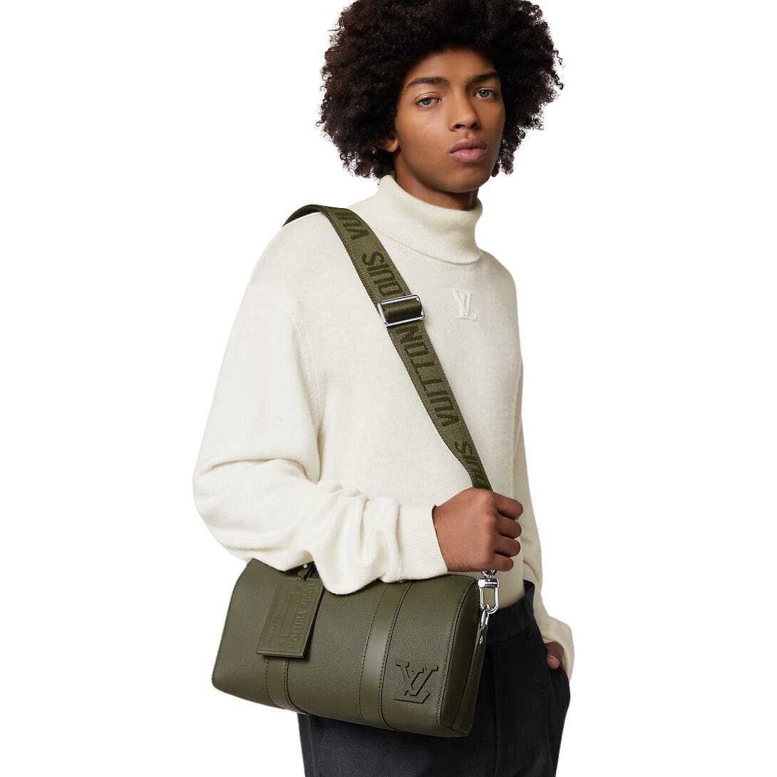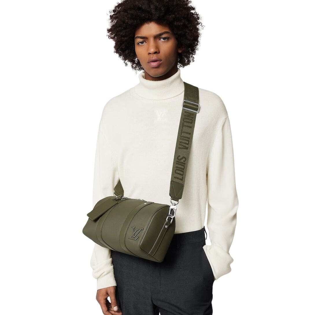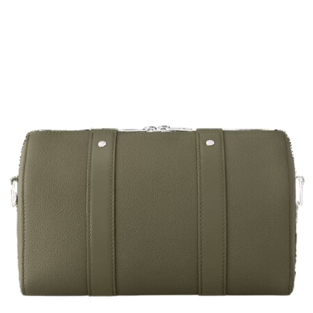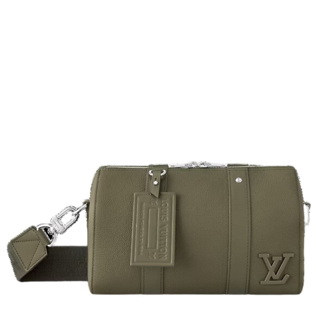 Introducing the LOUIS VUITTON CITY KEEPALL in LV Aerogram leather, a pinnacle of contemporary sophistication. Crafted from an exquisite grade of cowhide, dyed in a striking khaki hue, this compact yet capacious bag epitomizes modern elegance. With dimensions measuring 10.6 x 6.7 x 5.1 inches, it seamlessly blends practicality with style, making it the perfect companion for everyday adventures.