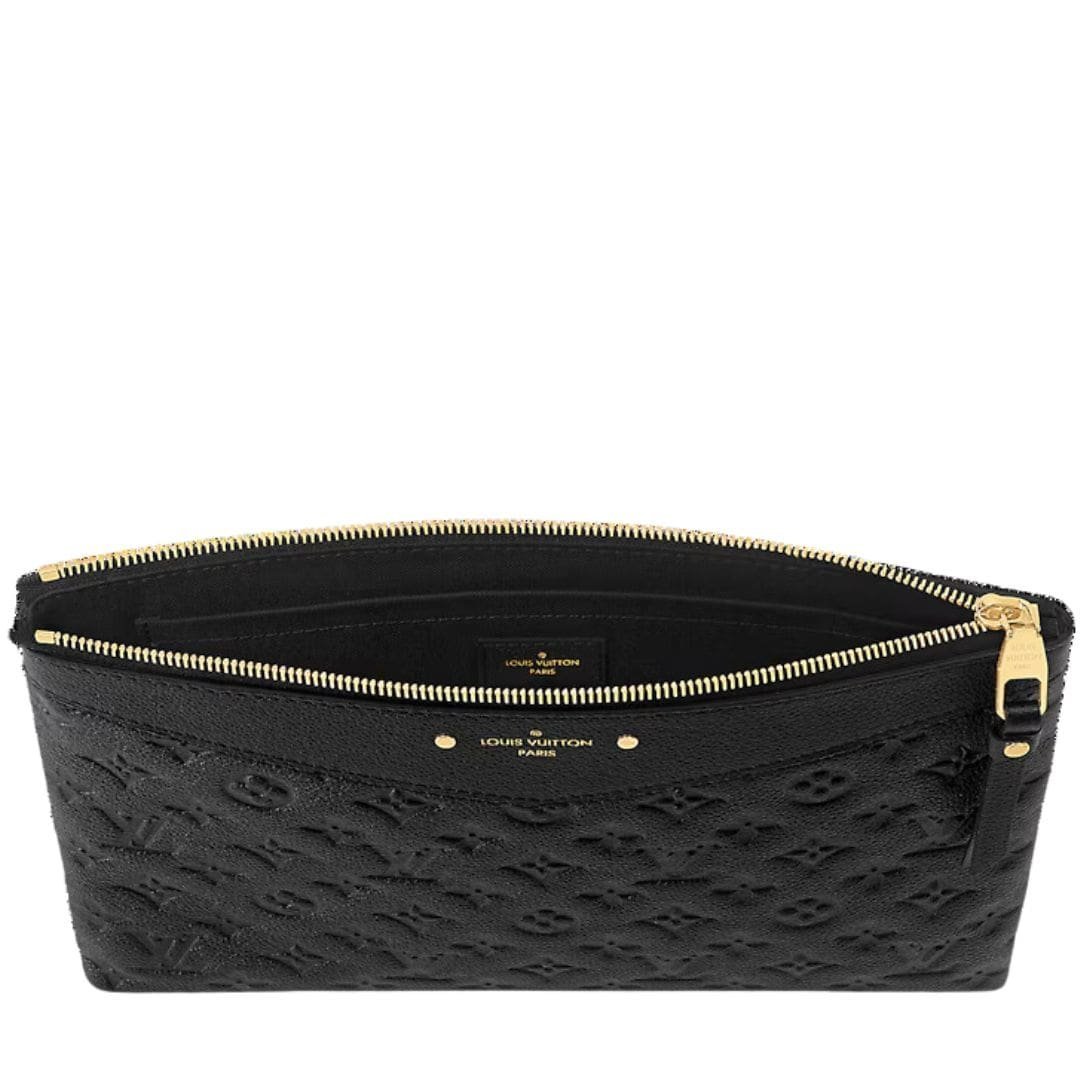 Indulge in the epitome of luxury with the LOUIS VUITTON DAILY POUCH , a timeless accessory crafted from exquisite Monogram Empreinte leather. This sleek pouch features Louis Vuitton’s iconic Monogram pattern embossed on supple-grained cowhide leather in classic black Noir, exuding sophistication at every glance.