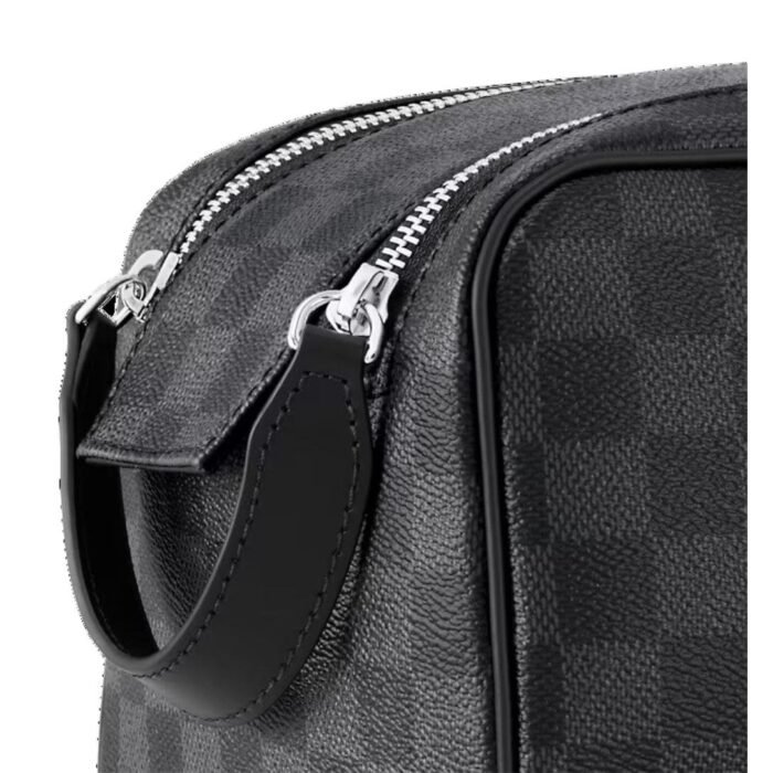 The Damier Graphite LOUIS VUITTON DOPP KIT TOILET POUCH is the epitome of Louis Vuitton’s dedication to craftsmanship, style, and sustainability, making it an essential accessory for the modern traveler.
