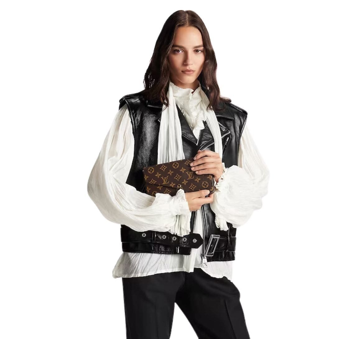 Crafted with meticulous attention to detail, this pouch features Monogram coated canvas and cowhide leather trim, complemented by gold-color hardware for a touch of opulence. The microfiber lining ensures a luxurious feel, while the cowhide-leather lining for leather removable parts adds durability.