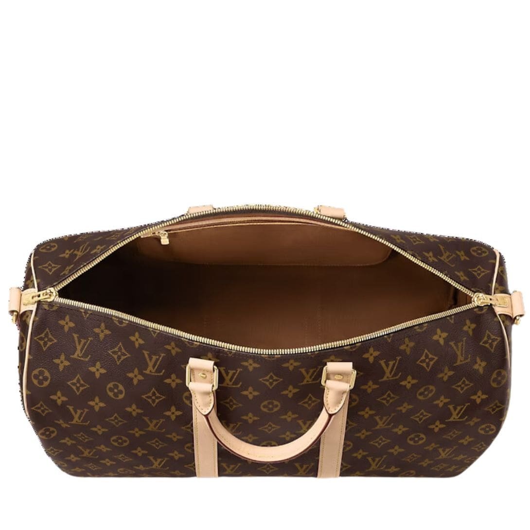 Elevate your travel experience with the LOUIS VUITTON KEEPALL BANDOULIERE 55— where timeless elegance meets modern functionality, and sustainability meets wanderlust. Embark on your next adventure with confidence, knowing you have a trusted companion by your side