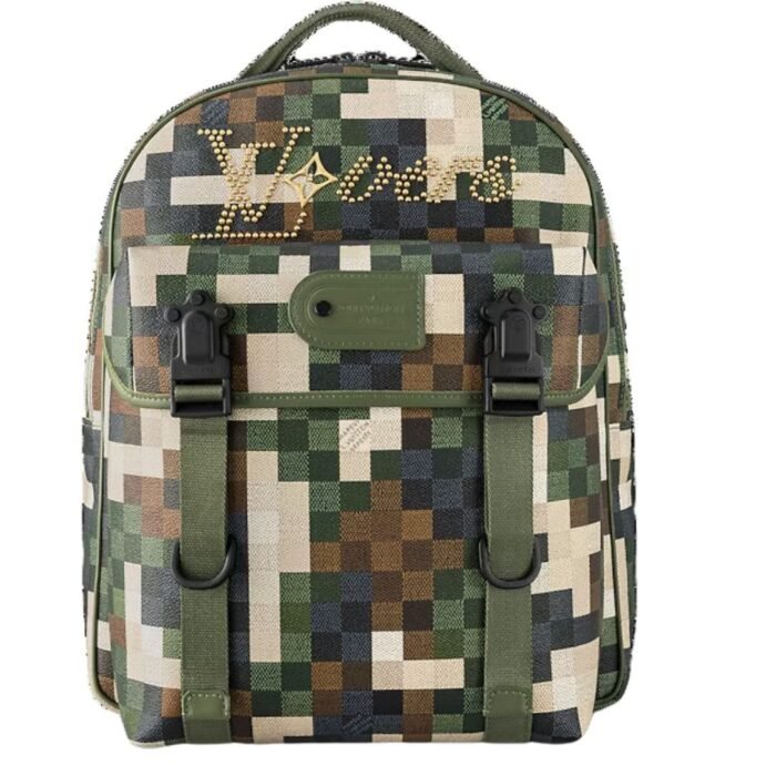 Introducing the LOUIS VUITTON MOTION BACKPACK , a bold fusion of functionality and fashion crafted from Damoflage-coated canvas, Pharrell Williams’ innovative reinterpretation of the iconic Damier motif. Designed to make a statement, this backpack showcases Williams’ unique vision with a pixilated camouflage pattern, while retaining the timeless elegance synonymous with Louis Vuitton.