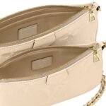 Measuring 9.8 x 5.7 x 1.8 inches, this iteration in Crème Beige boasts embossed-grained cowhide leather with cowhide-leather trim and gold-color hardware, epitomizing understated luxury. The removable chain and adjustable strap enhance versatility, allowing you to effortlessly switch between different carry styles.