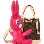 Introducing the exclusive collaboration between Louis Vuitton Artistic Director Nicolas Ghesquière and renowned artist Sun Yitian, the LOUIS VUITTON NANO NOE bag in this limited edition celebrates the whimsical world of playful artistry. Inspired by Yitian’s vibrant paintings of mass-produced toys, this miniature masterpiece features a delightful pink leather rabbit adorning the iconic Monogram-coated canvas, injecting a touch of joy into everyday life.