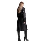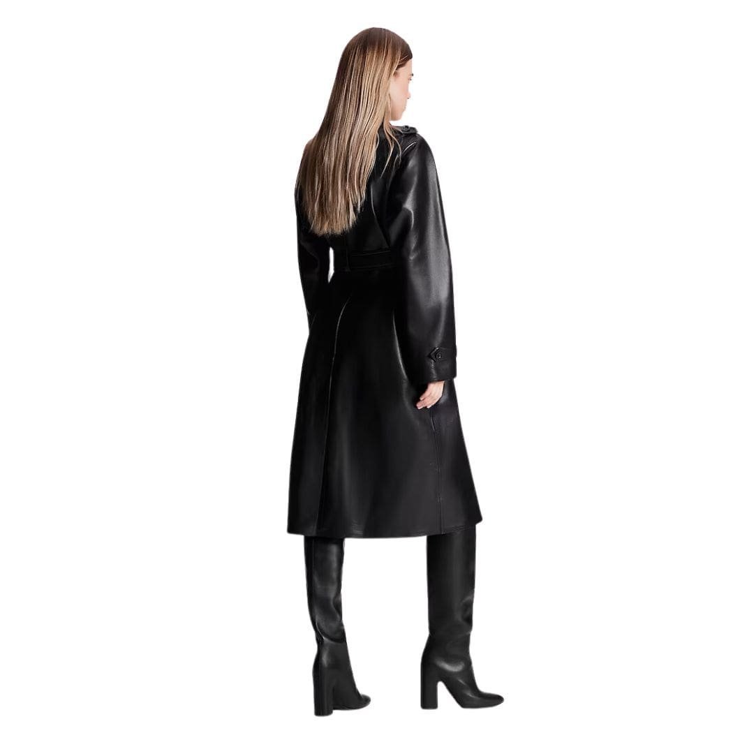 Crafted from 100% calfskin leather in timeless black, this trench coat exudes luxury and craftsmanship. The premium quality of the leather ensures durability and longevity, making it a timeless investment piece that will withstand the test of time.