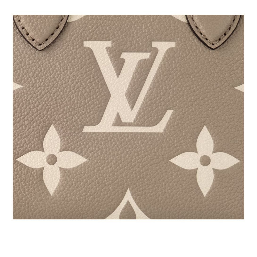 The Dove Gray/Cream colorway exudes sophistication, complemented by natural cowhide-leather trim and gold-color hardware. The Monogram Empreinte cowhide leather used in this product is sourced from LWG-certified tanneries in Europe, ensuring environmental sustainability.