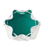 The bag’s white colorway pays homage to the background of the original artwork, adding depth and dimension to its aesthetic appeal. Crafted with meticulous attention to detail, the calfskin trim and microfiber lining exude luxury and refinement.