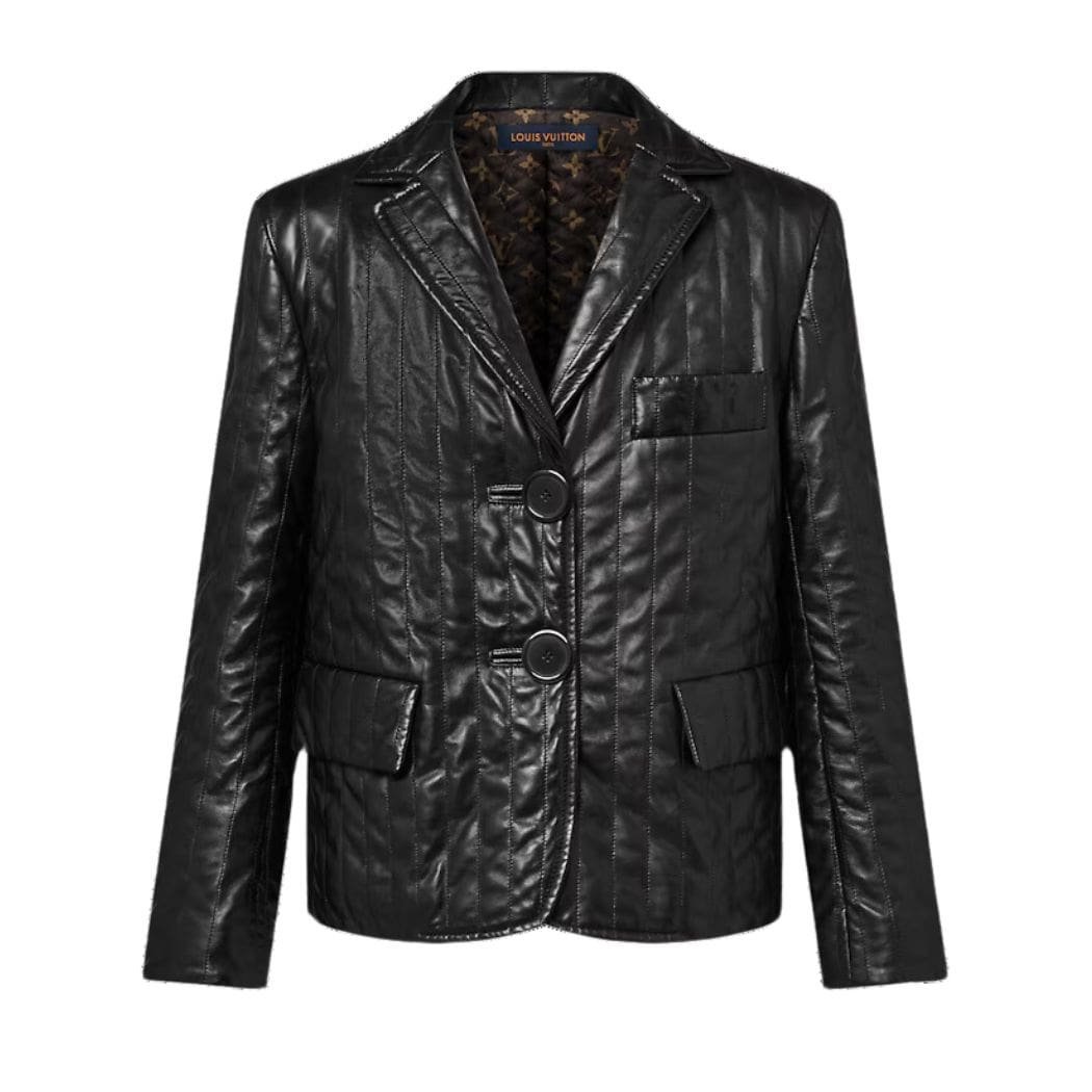 The Louis Vuitton Pinstripe Leather Blazer offers a rebellious twist on traditional tailoring, blending classic sophistication with contemporary edge. Crafted from lightweight lambskin, it features a quilted pinstripe pattern that pays homage to timeless menswear aesthetics. The silhouette is modern and boxy, providing a sleek fit that exudes confidence.