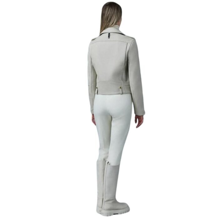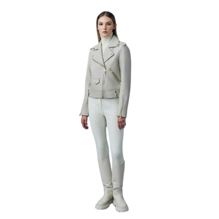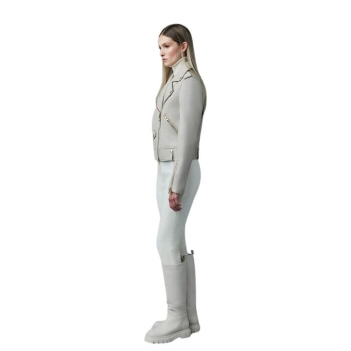 The Mackage Baya (r) Leather Biker Jacket is a women’s biker jacket crafted from supple, sustainable (R) Leather. Designed with a straight silhouette, it features a classic asymmetrical zip front closure and a snap-notch collar. Its relaxed fit and action back provide ease of movement, making it perfect for effortless layering. The jacket is finished with signature silver hardware and zip pockets for a timeless, stylish look.