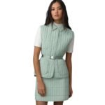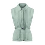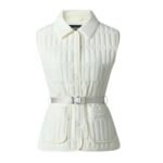 The Mackage Helia Light Down Vertical Quilted Vest is a lightweight down piece featuring a water-repellent and windproof shell, making it ideal for layering. Its spread collar, vertical quilting, and snap front closure provide additional cold-weather protection. The adjustable belt with buckle enhances the semi-fitted silhouette, while spacious waist zip pockets and a signature Mackage silicone logo add functional and stylish details. Offering multi-seasonal warmth without the bulk, this vest is both practical and chic.