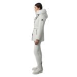 - Center front zip with storm placket
