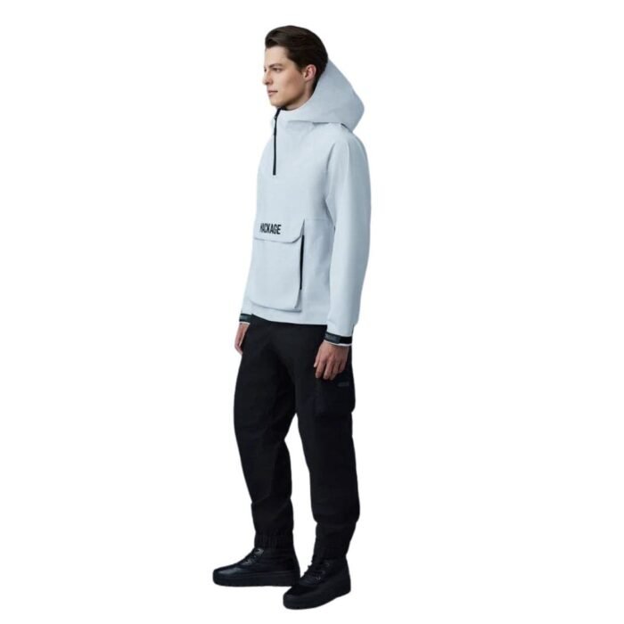 Introducing Mackage Jona Unlined Pullover Ski Jacket with Hood, an unlined pullover technical jacket designed for men, meticulously crafted with seam-sealed construction and a storm visor for enhanced protection against the elements. Crafted from a water-resistant and repellent windproof twill shell, this jacket ensures durability and comfort in varying conditions.