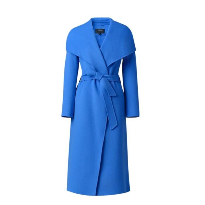 The Mackage Mai-Cn Double-Face Wool Wrap Coat, expertly crafted from luxurious, soft double-face wool. Designed with a fluid drape, it provides a relaxed fit and an unlined layer, ideal for mild weather. The elegant waterfall collar and leather welting on the waist pockets and belt loops add a touch of sophistication. Key features include: