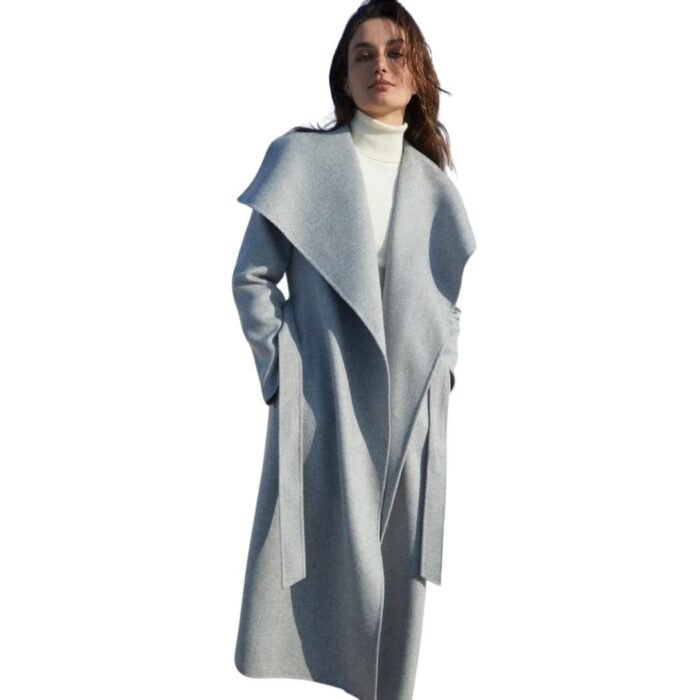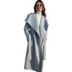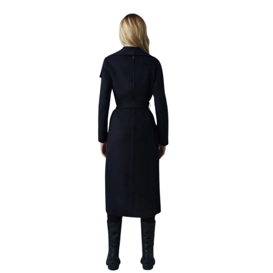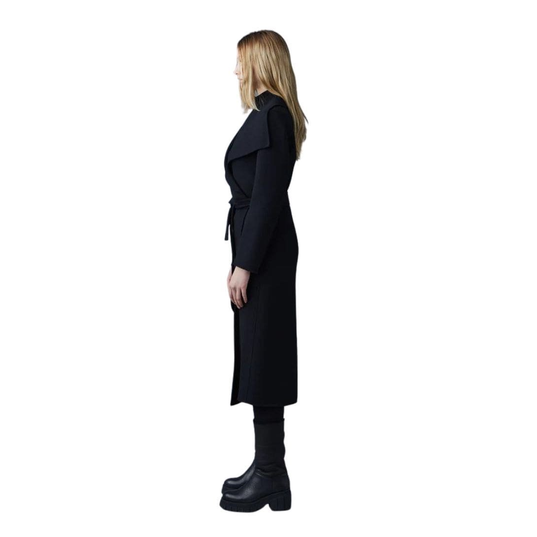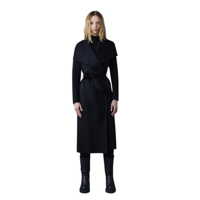 The Mackage Mai-Cn Double-Face Wool Wrap Coat, expertly crafted from luxurious, soft double-face wool. Designed with a fluid drape, it provides a relaxed fit and an unlined layer, ideal for mild weather. The elegant waterfall collar and leather welting on the waist pockets and belt loops add a touch of sophistication. Key features include: