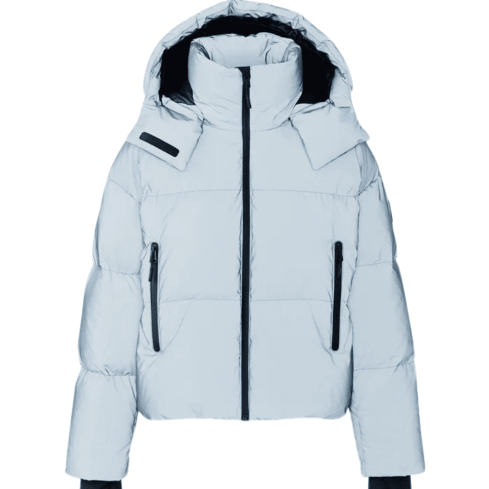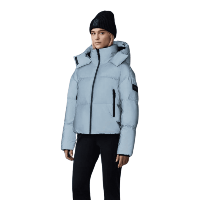 The Mackage Tessy-rf down jacket with reflective shell for women featuring an illuminating. Expertly tailored, it boasts a stand collar with a detachable hood and an adjustable drawcord at the bottom hem. Cut to an oversized silhouette, rib knit storm cuffs and insulated pockets provide extra warmth protection while the center front zip and hidden zipper pockets at the side seam add functional appeal. A standout streamlined style with a unique eye-catching exterior.