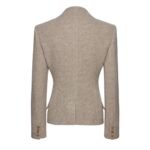 At the heart of this jacket’s allure is its fitted and feminine design, meticulously tailored to accentuate the curves of the body while maintaining a sense of elegance and grace. The silhouette strikes a delicate balance between structure and softness, creating a flattering and versatile piece that effortlessly transitions from day to night.