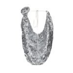 In summary, the Magda Butrym cowl neck sequin top in silver is a remarkable creation that combines hand-crafted sequins, a plunging cowl neckline, and a striking 3D rose appliqué. Its blend of glamour, elegance, and intricate detailing makes it an essential addition to any fashion-forward wardrobe.