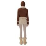 The exposed cuffs and collar add a touch of drama and sophistication to the design, creating a striking contrast against the smooth suede exterior. These details not only enhance the jacket’s aesthetic appeal but also provide added insulation against the cold, ensuring that you stay warm and stylish in any weather.