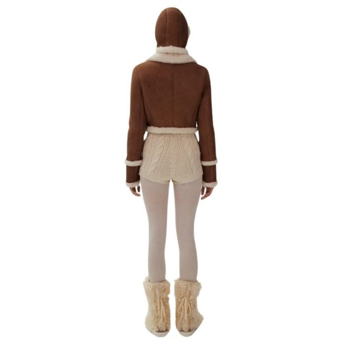 Embrace the luxurious feel and sophisticated style of Magda Butrym’s cropped shearling jacket and elevate your outerwear collection with this exquisite piece. With its blend of sumptuous materials, impeccable craftsmanship, and timeless design, it is sure to become a cherished staple in your wardrobe for years to come.
