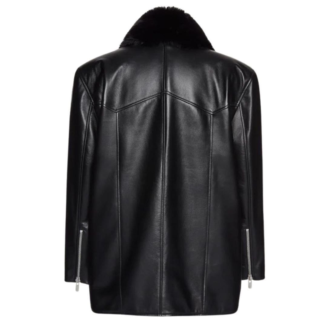 The Magda Butrym Faux Fur Boxy Leather Jacket in Black. redefines contemporary sophistication with its bold design and luxurious materials. Crafted from high-quality leather, this jacket boasts a boxy silhouette that exudes modern edge and confidence.