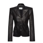 In conclusion, Magda Butrym’s fitted leather blazer is a testament to the brand’s commitment to quality craftsmanship and timeless elegance. With its snug fit, peak lapels, and intricate button detailing, it embodies sophistication and style, making it a versatile and timeless addition to any wardrobe. Crafted from luxurious leather, it offers a sumptuous feel and exceptional quality, ensuring that it remains a wardrobe staple for years to come.