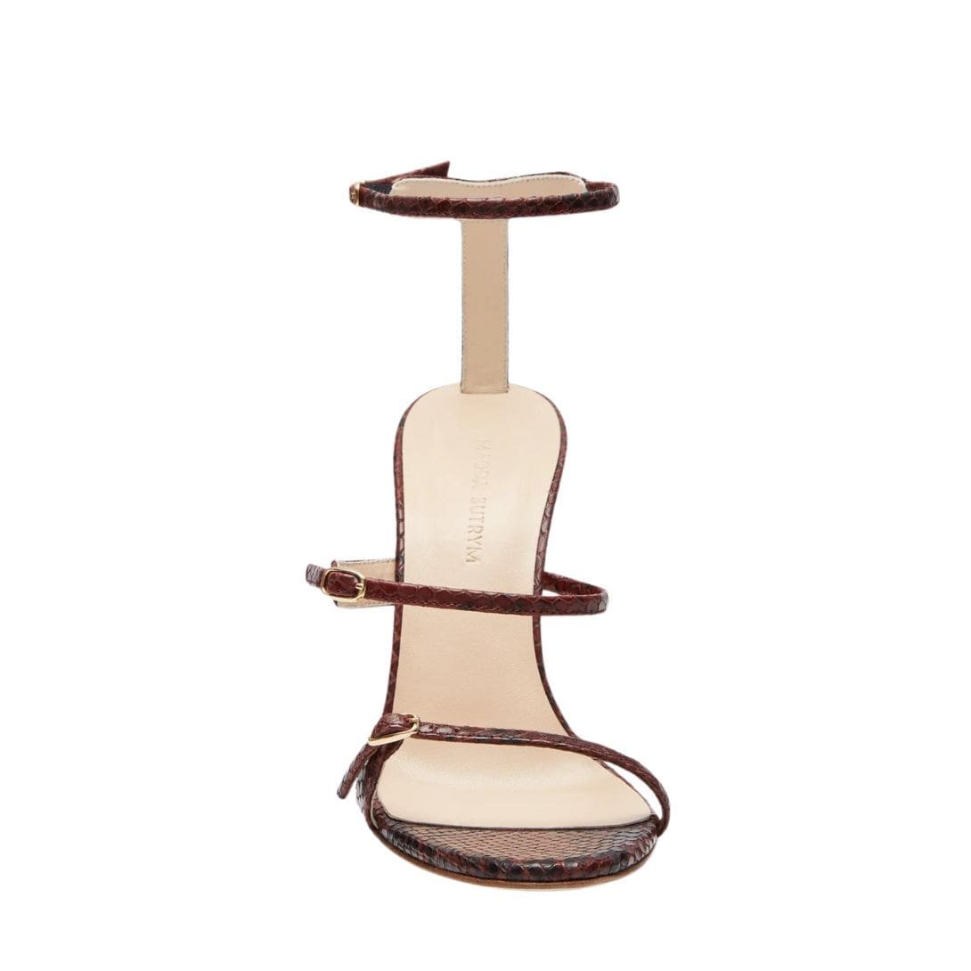 Indulge in the epitome of contemporary sophistication with MAGDA BUTRYM INVERTED WEDGE SANDALS IN BROWN, meticulously crafted to perfection. These sandals, perched atop a 10 cm wedge heel, redefine elegance with their innovative design and exquisite craftsmanship.