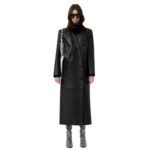 Step into timeless elegance with the Magda Butrym Long Leather Tailored Coat In Black, a sophisticated masterpiece that epitomizes refined style and modern allure. Crafted with meticulous attention to detail, this ankle-length coat is the epitome of understated luxury, redefining traditional outerwear with its unique blend of classic design and contemporary flair.